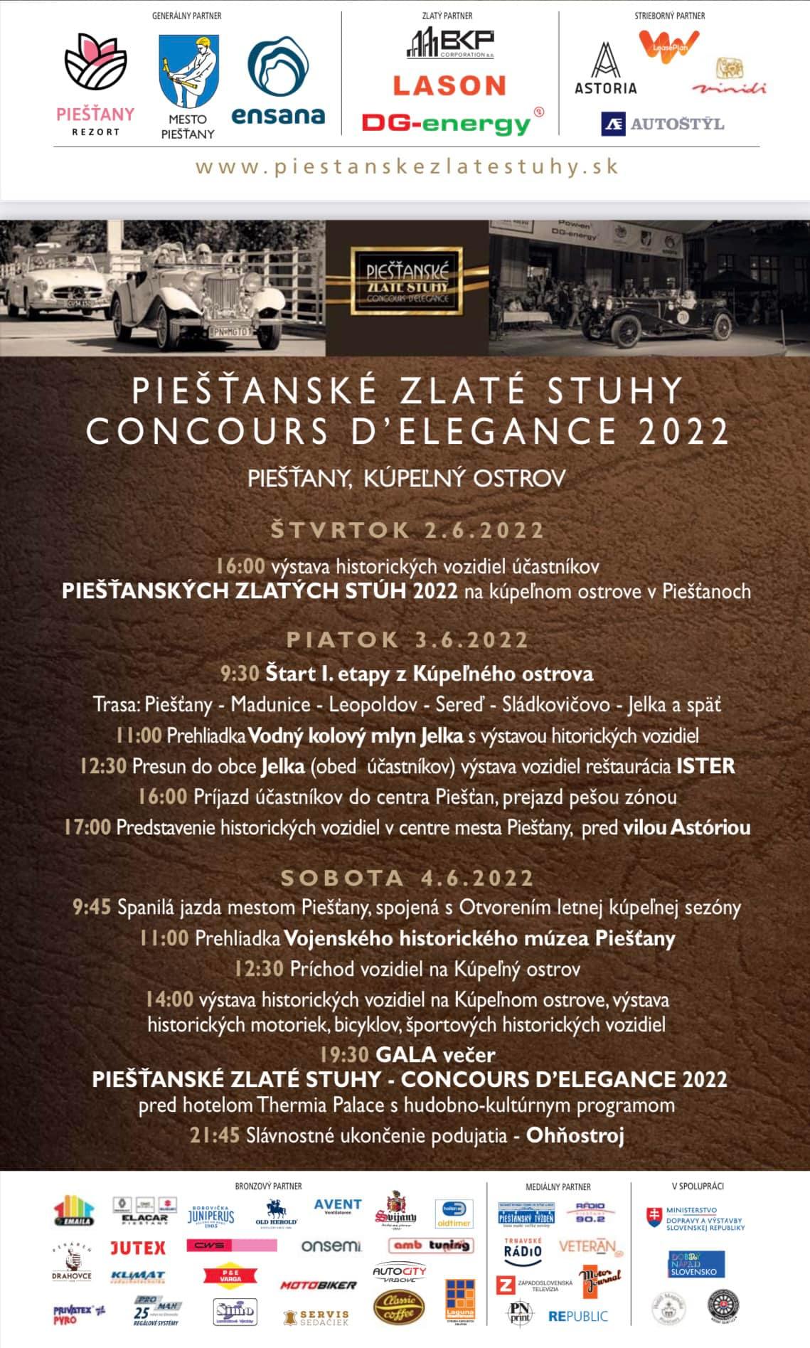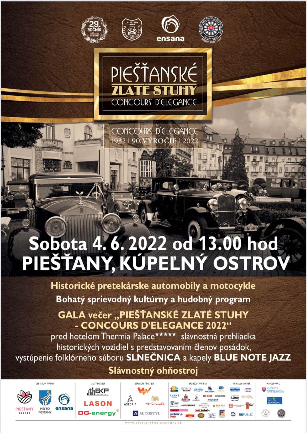 Prehliadka a stretnutie majiteľov historických automobilov Zlaté stuhy – Concours d´Elegance sa tento rok koná po 29. raz. Od prvého ročníka však uplynulo už 90 rokov. Program dnes vyvrcholí na Kúpeľnom ostrove pre Thermiou Palace.