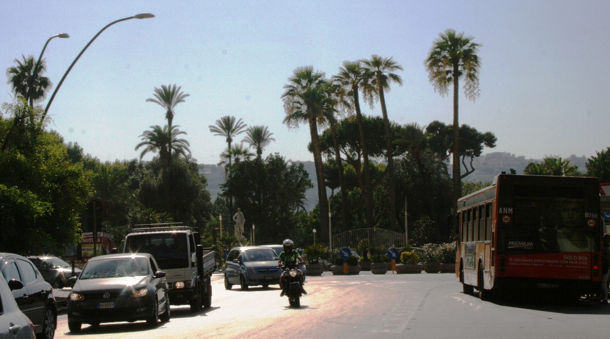 Ale po poriadku: Keď sme vyliezli z lietadla, v Neapole nás doslova „ovalila“ horúčava, ako keby sme pristáli v Turecku, či v Egypte (rozpálený betón a asfalt je asi všade rovnaký). Ďalší čudne známy pocit prišiel, keď sme sa zaradili do miestnej dopravy. V Indii som síce nebola, no o chaose na ich cestách som už čo to počula i videla v televízii. Taliani ho majú veľmi podobný…Postupne sme ale prišli na určitý systém, ktorý však podľa mňa s dopravným značením nemá veľa spoločného. Napríklad skútre, ktorú sú tu doslova všade, vás bežne obiehajú zľava, sprava, dokonca aj keď stojíte na stopke či na červenej. Ku cti im slúži snáď len to, že keď vás idú obehnúť, zatrúbia.