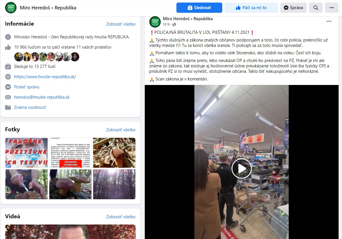 Video na svojom profile, odkiaľ sa najmasívnejšie šírilo, zverejnil tiež muž, ktorý často zdieľa príspevky proti vakcinácii, rúškam, či posty so Štefanom Harabinom, Andrejom Dankom, ale v galérii má i hrdé podanie si ruky s Milanom Uhríkom.