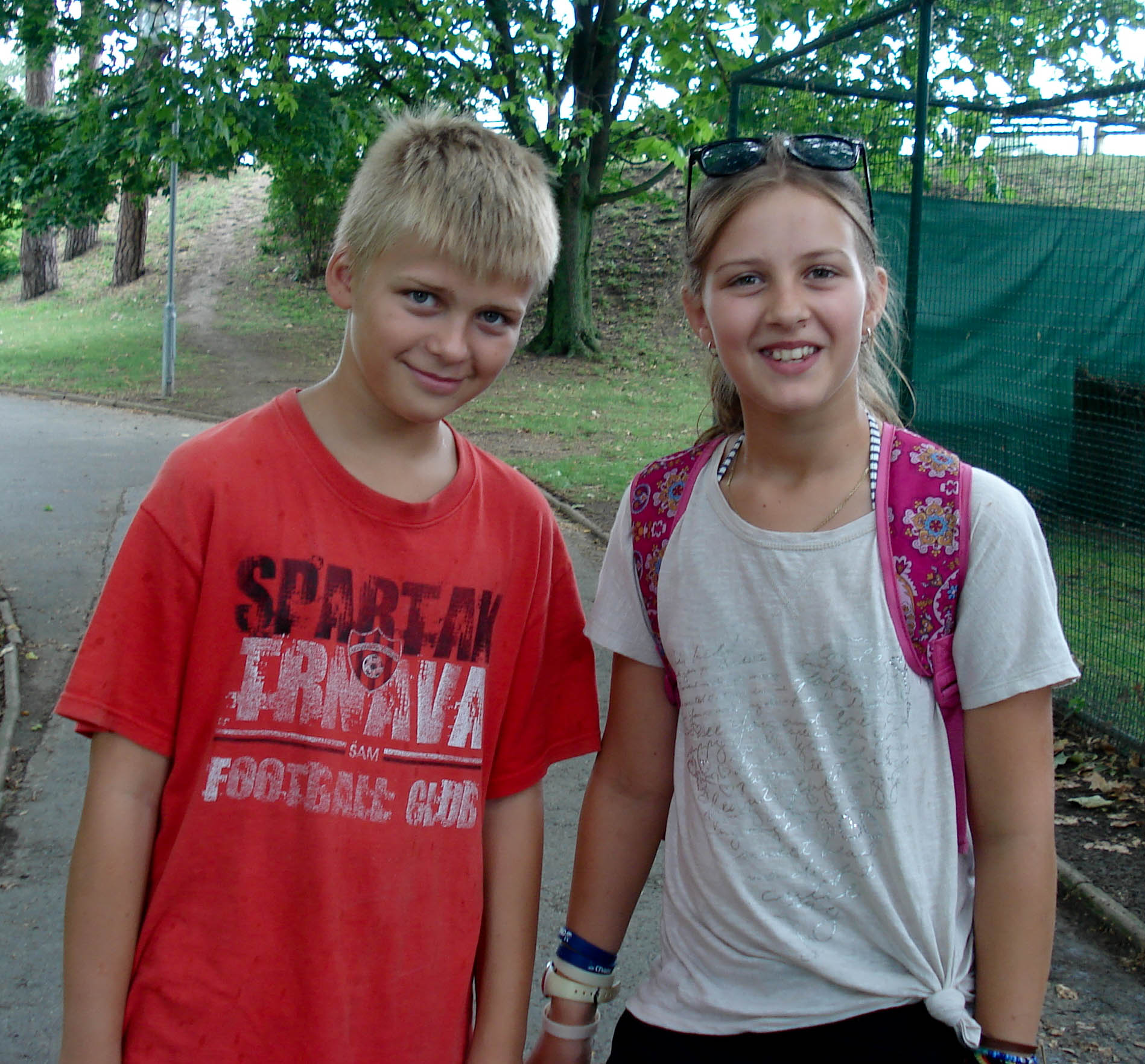 Miriam day 2Niekedy na zlepšenie nálady stačí stretnúť dve šťastné decká… Mimochodom, volajú sa Veronika a Dominik. Stretla som ich v parku na prechádzke. Chceli ísť na Evu. Radi plávajú a  opaľujú sa. Sú z Leopoldova. Sú na prázdninách u babiny. Boli veľmi milí a stále vysmiaty.
