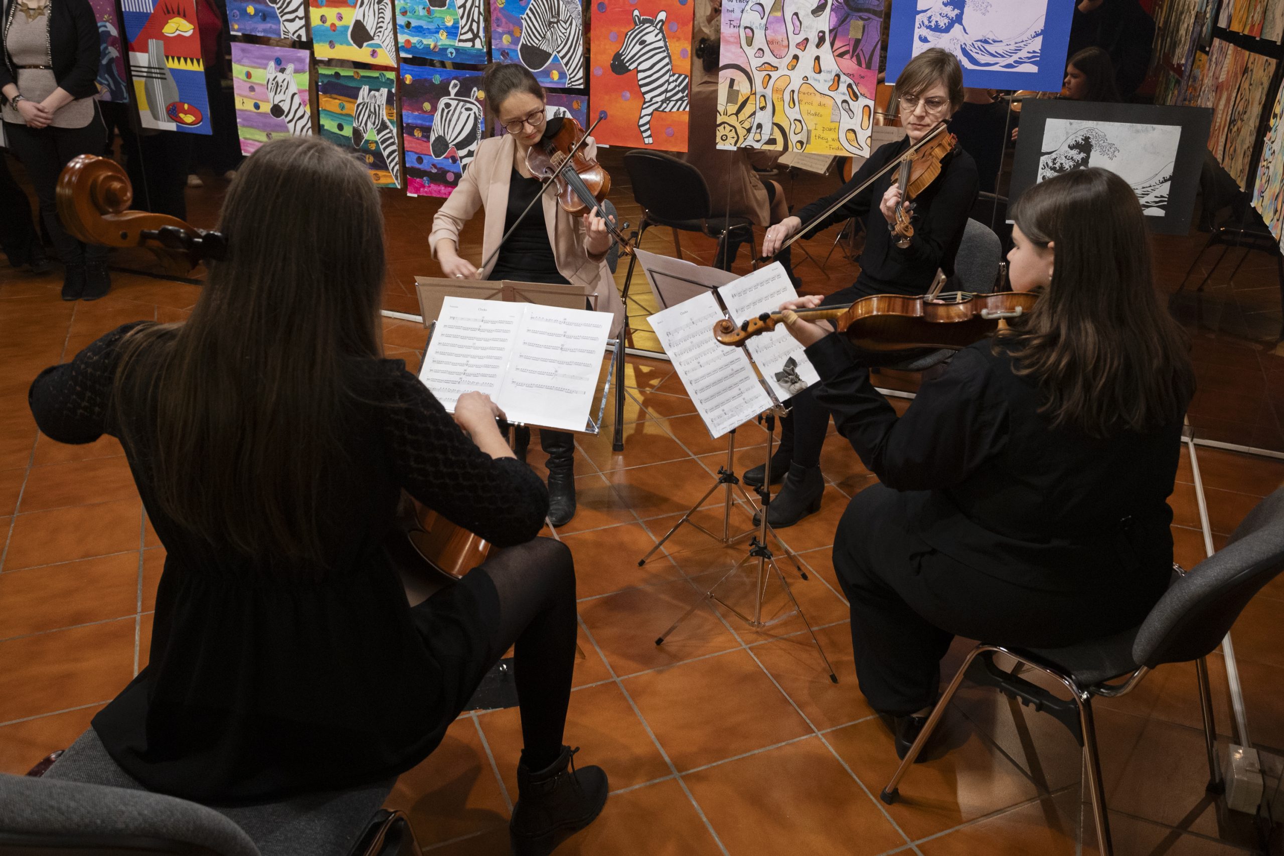 Vernisáž výstavy Farby našich dní prác žiakov výtvarného odboru Súkromnej Základnej umeleckej školy v Piešťanoch v Dome umenia Slovenskej filharmónie.