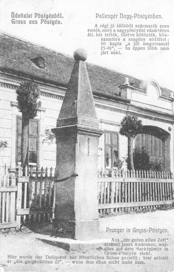 Pranier v blízkosti Mariánskeho námestia v Piešťanoch (naproti tlačiarni PNprint resp. naproti Cirkevnej základnej školy na ulici Pod Párovcami) podľa údaju, ktorý je na ňom uvedený, pochádza z roku 1830. Na historických pohľadniciach vidíme, že jeho pôvodné miesto bolo inde, pravdepodobne na chodníku približne v mieste kde v súčasnosti stojí pamätník padlým vojakom, Piešťancom v I. svetovej vojne.