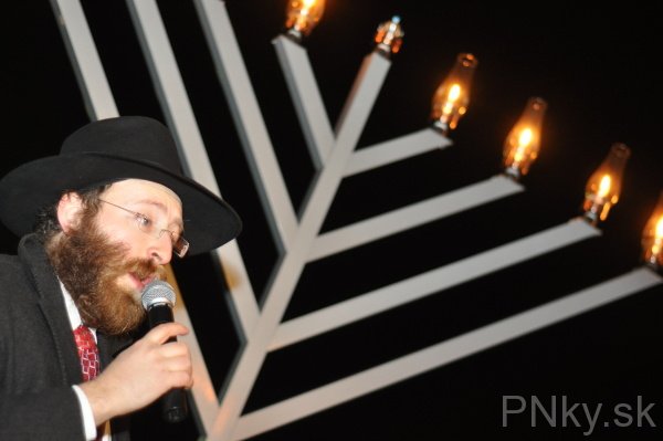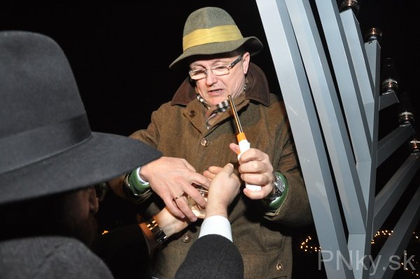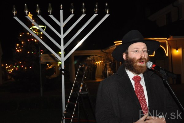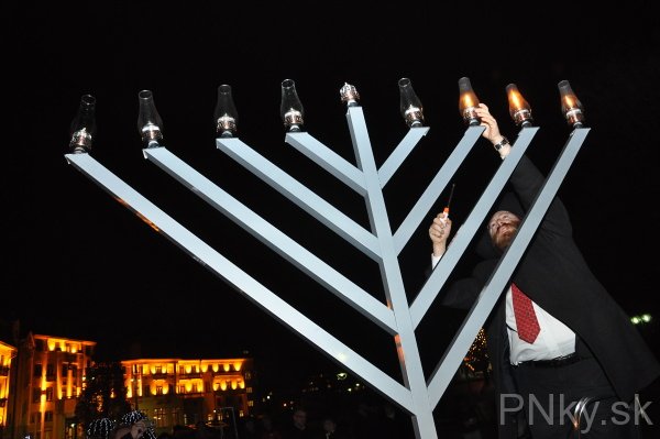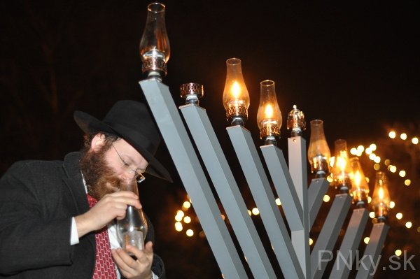 Do Piešťan prišli osláviť znovuzasvätenie Jeruzalemského chrámu asi tri desiatky ľudí. V 2. storočí pnl. Makabejci povstali proti sýrskemu kráľovi a v Chráme zapálili večné svetlo, ale zostal im olej len na jeden deň. Stal sa však zázrak a malé množstvo oleja vydržalo až osem dní. Odvtedy žida na 25. deň mesiaca kislev zapaľujú vo svojich domácnostiach prvú sviecu na osemramennom svietniku.