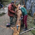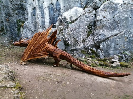Drak z orechového dreva pred „príletom“ k hradnej studni absolvoval štyristo kilometrov dlhú cestu autom z dedinky v trebišovskom okrese. Na hradné nádvorie ho žeriav dopravil po častiach a až na mieste ho autor zmontoval do výslednej podoby. Aby dlho dokázal tešiť malých i veľkých návštevníkov drevo bolo ošetrené proti škodcom a povrchovo upravené pomocou oleja a glazúry.