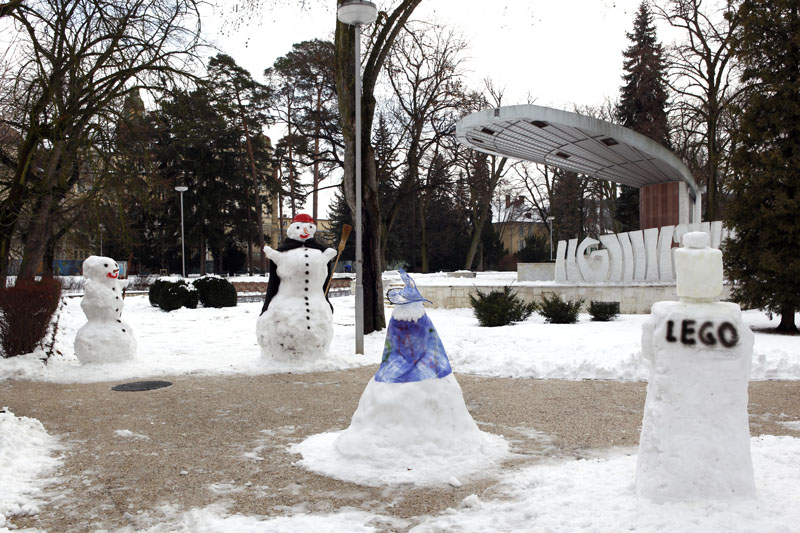 Dve desiatky veľkých i malých staviteľov snehuliakov prijali pozvanie OZ Pro Civitate, PNiek a Kursalonu a pokúsili sa v sobotu 18. februára postaviť Piešťanského maxisnehuliaka. Ten mal napokon necelé 3 metre, čiže nebol úplne maxi, ale zato mu pribudli kamaráti, aby mu nebolo smutno. Pred Kursalonom sa teda aktuálne môžete pozrieť na troch snehuliakov, snehovú borosku a panáčika z Lega.