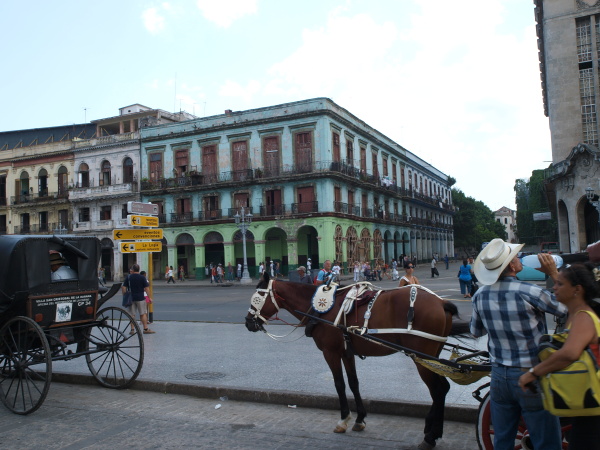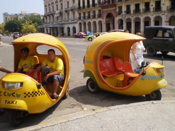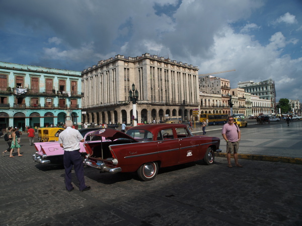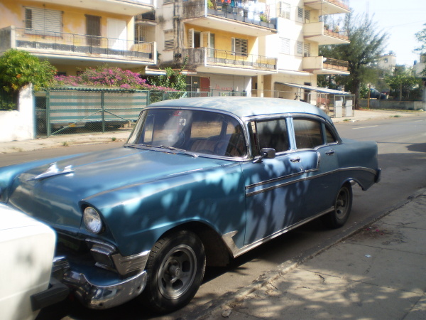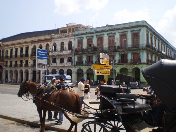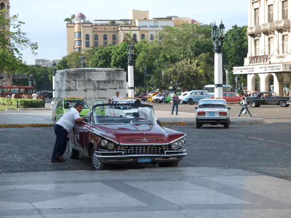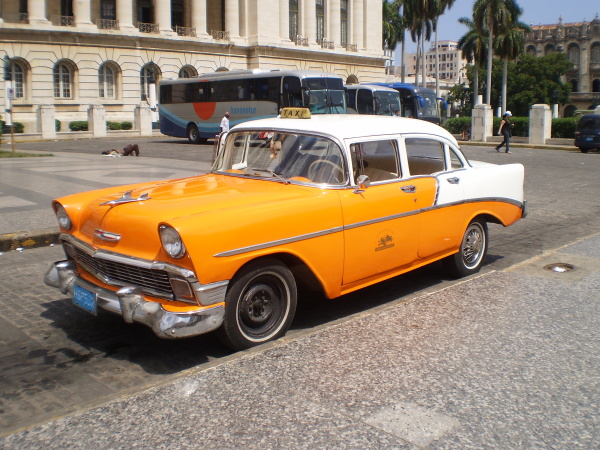 Po našom príchode do hlavného mesta nás čaká rodinná známa, Kubánka Elza, ktorá pracuje pre cestovnú kanceláriu na Kube ako sprievodkyňa. Vychádzame bočnou uličkou zo štvrti Vedado. Ľudia vysedávajú na svojich polorozpadnutých terasách a diskutujú so susedmi. Na hlavnom ťahu Elza kýva na autá na ceste. Zastavuje nám americký Ford z päťdesiatych rokov. Na streche však nemá žiadny nápis. Sedím vzadu na masívnej koženej sedačke spolu s dvoma ženami a troma deckami. Neskôr Elza vysvetľuje, že taxíky sú pre Kubáncov dosť drahé, preto miestni využívajú „colectivos“. Každý, kto má doma niečo, čo jazdí, sa tak snaží privyrobiť si tým, že zvezie kohokoľvek za pár centavos. Takto nás cesta do centra vyjde asi desať centavos, bez Elzy by nás však ako turistov nevzali. Vystupujeme v centre pred mohutným Capitoliom.