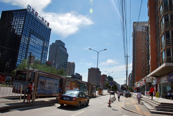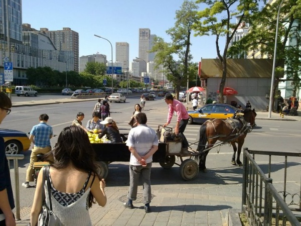 Druhý pokus vyšiel. Pol hodinu som sedela prilepená k oknu a sledovala nový svet okolo. Popri cestách kvitli upravené záhony ruží, zelené parky striedali moderné výškové budovy a keď sme zišli z hlavného ťahu objavila sa aj tradičná čínska architektúra, lampióny, drožky, trhoviská. Cestná doprava tam už úplne stratila pravidlá. Chaos v neutíchajúcom rytme trúbenia klaxónov. Autá míňajúce sa o milimetre, chodci, cyklisti a motorky vyplňujúce miesto, ktoré náhodou zostalo, taxi trojkolky ženúce sa do protismeru, sem tam a mihne voz alebo samotný kôň obložený tovarom.