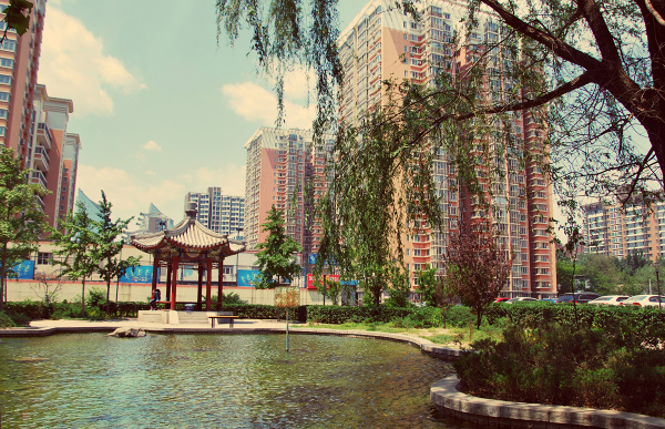 Za pár hodín môjho strnulého spánku sa Peking zmenil. Slnko sa dobíjalo do mojej izby a výhľad z balkóna hovoril jasne o začiatku krásneho dňa. Zelený park s rybníkom a altánkom sa už neskrýval v nočnej tme. Okolie sa už vôbec nepodobalo na zlovestné geto. Prekvapovalo množstvo stromov, kvetov a upravených kríkov.