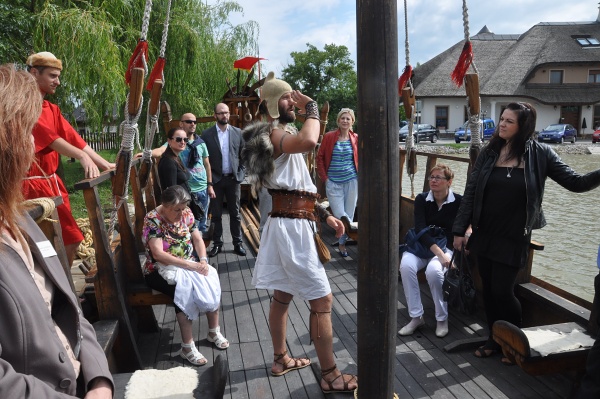 Zástupcovia cestovných kancelárií a iných subjektov cestovného ruchu sa oboznámili najnovšou piešťanskou atrakciou. Pri Rybárskom dvore kotví verná kópia starovekej vojenskej lode, ktorá je zároveň múzeom. Návštevníci sa na jej palube premenia na námorníkov.