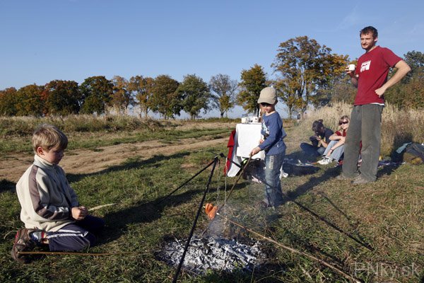 Krásne slnečné počasie a vidina púšťania šarkanov vytiahli v nedeľu 10. októbra na Šarkaniádu, ktorá sa konala na poli na Červenej veži nad Piešťanmi, takmer stovku detí s rodičmi či starými rodičmi. Vietor síce chvíľu pofukoval a chvíľu nie, ale keďže dolu brehom sa dobre beží, nebolo to až také dôležité a šarkany sa podarilo dostať do vzduchu aj tak.