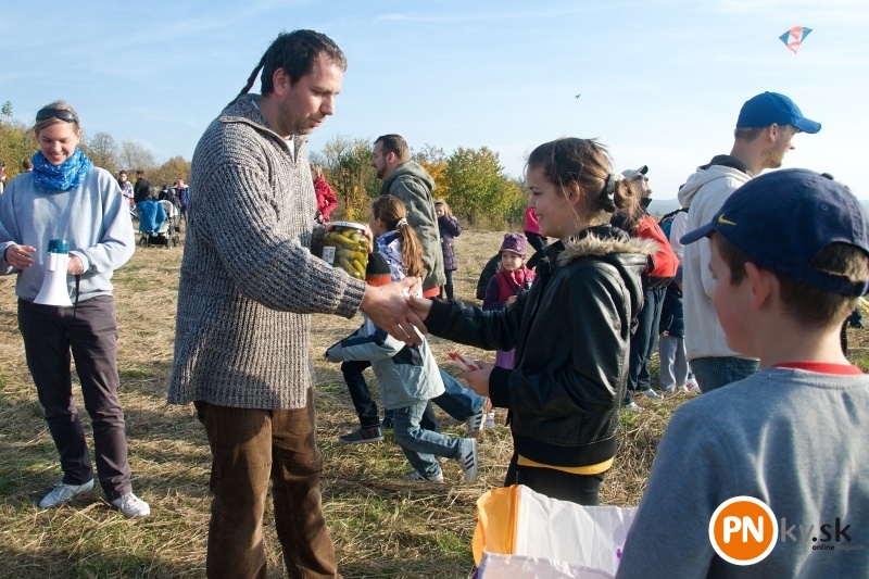 Takto stručne a presne charakterizoval dnešné popoludnie na Červenej veži jeden z najmenších účastníkov. Na lúku s výhľadom na Piešťany prišli stovky ľudí, najmä rodín s deťmi. Zatiaľčo sa zväčša rodičia snažili dostať šarkanov do vzduchu, deti sa naháňali hore-dolu kopcom a užívali si slnečný jesenný deň.