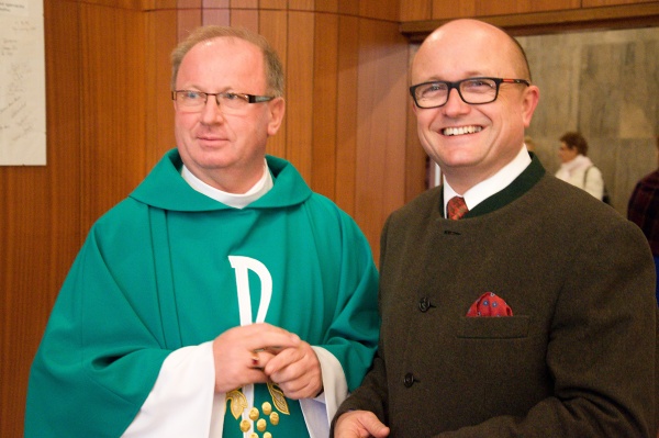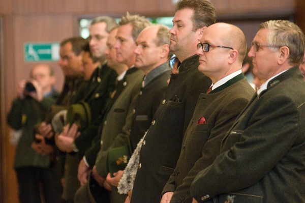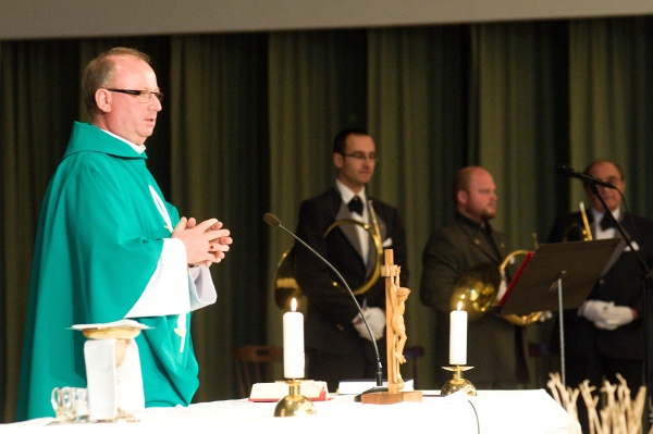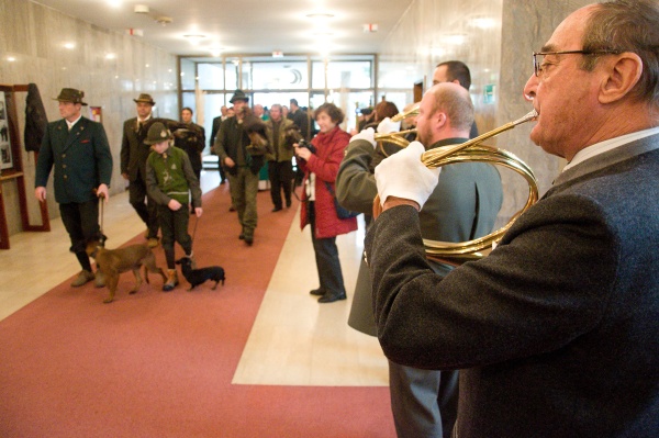 Zima zmenila aj plánovaný priebeh nedeľnej svätej omše. Tá sa namiesto hudobného pavilónu Harmony uskutočnila v Spoločenskom centre. Poľovníci symbolicky obetovali svätému Hubertovi statného dvanástoráka, ktorého ulovili v poľovnom revíri Striebornica. Omšu slúžil bývalý piešťanský dekan Jozef Bohunický za sprievodu dychovej hudby Rovina z Veľkých Kostolian. Počas kázne hovoril najmä o vďake za božie dary, ktoré dostávame z prírody aj o odkaze svätého Huberta, patróna poľovníkov.