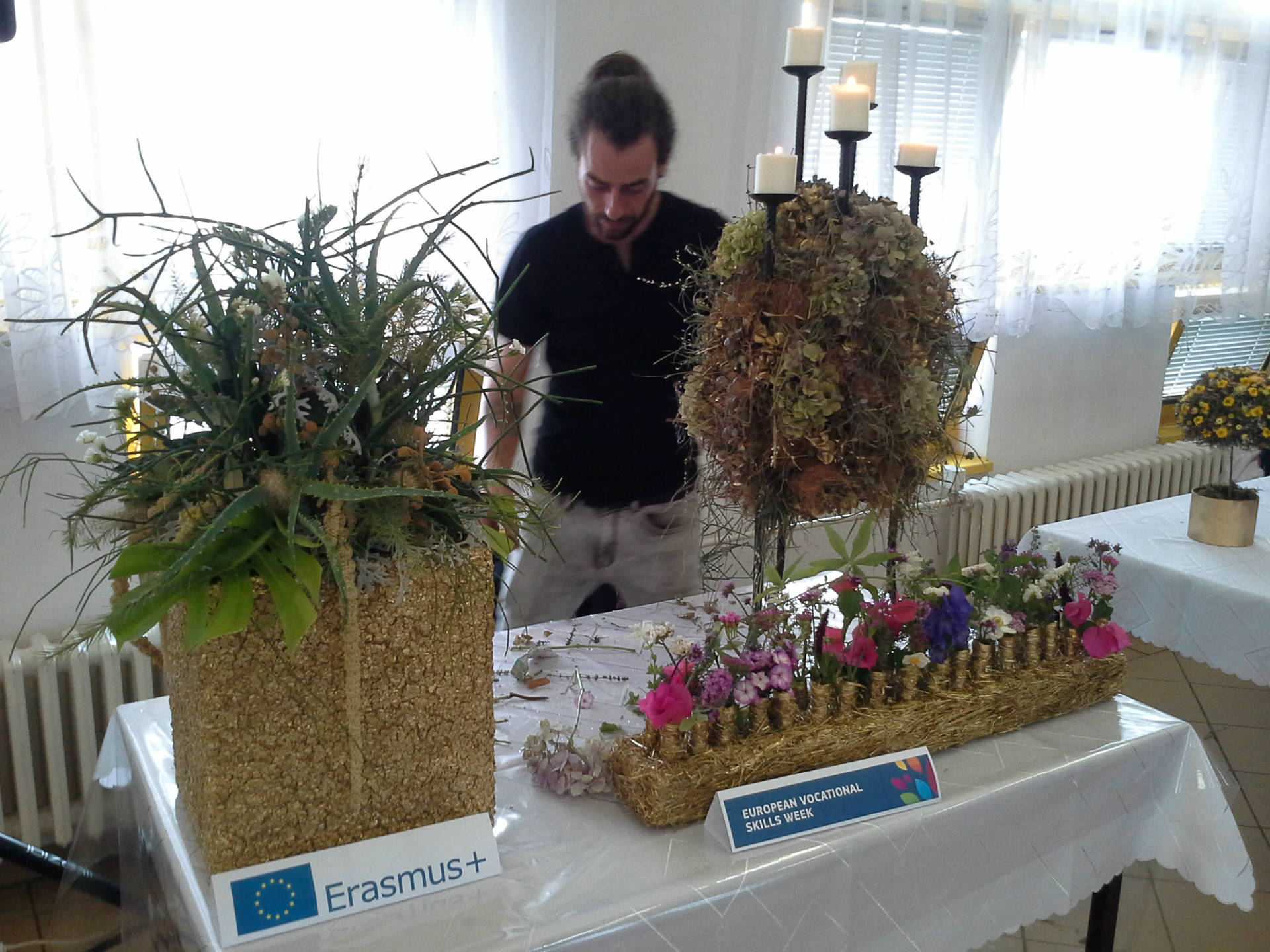 Inšpiratívne ukážky nových trendov vo floristike predviedol majster odborného výcviku v SOŠ Rakovice Ing. Patrik Komár počas floristickej show. Návštevníci mali možnosť sledovať, ako vyzdobil svietnik, dekoračnú nádobu do interiéru aj netradičnú kyticu.