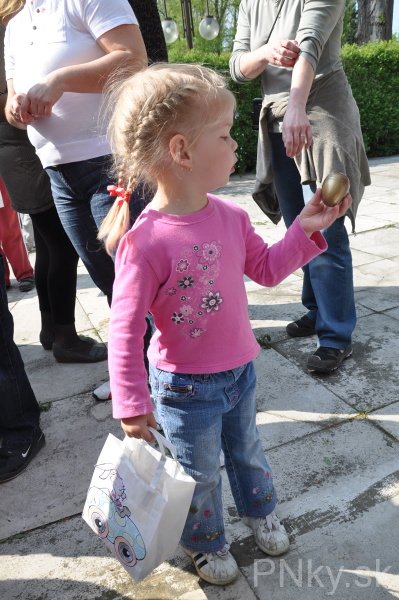 Desiatky detí a rodičov prilákal na Veľkonočnú nedeľu u nás netradičný zvyk, ktorý už tretí rok spestruje osvedčenú šibačku. Najprv bolo potrebné farbičkami vyzdobiť tašky. Do nich potom malí hľadači zbierali svoje úlovky. Po štarte zaplavili park húfy detí, ktoré všetko prehľadávali. Tým najmenší pomáhali rodičia a komu sa málilo dostal vajíčko od zajaca a kohúta.