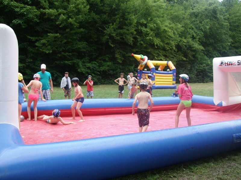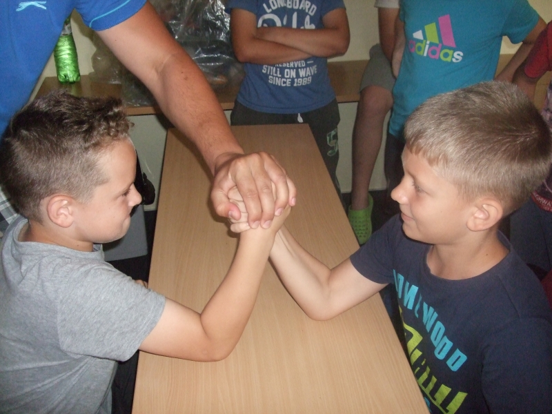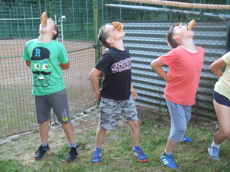 Okrem toho sme stihli kopec rôznych hier, súťaží, streľby zo vzduchovky, cvičenie zumby i sebaobrany a na záver i táborové súťaže s následnou tombolou, kde deti vyhrali krásne ceny za nazbierané body v súťažiach. Svoje sily si vyskúšali vo vodnom futbale a vyskákať sa mohli v skákacom hrade či každý deň na trampolíne. Na volejbalovom ihrisku sme si zahrali prehadzovanú a nezabudli sme ani na táborový oheň a spravili sme si opekačku so špekáčikmi, ktoré si deti samé pripravovali. A keď chvíľu počasie neprialo, využili sme bazén, ping-pong a tiež sme si nakreslili erby jednotlivých oddielov tábora, deti boli veľmi kreatívne.