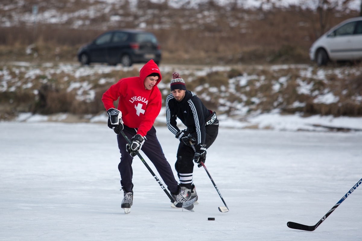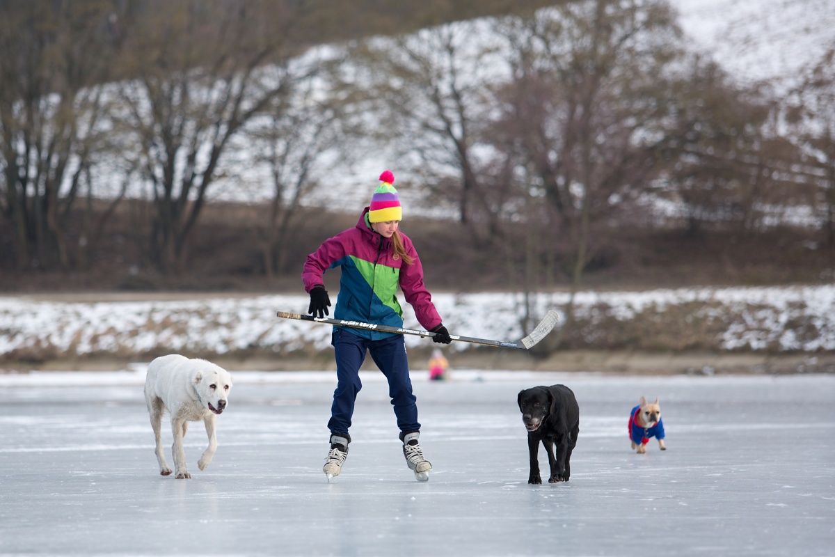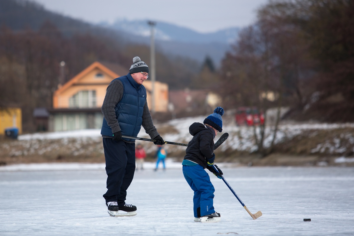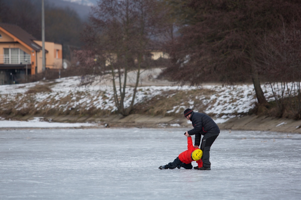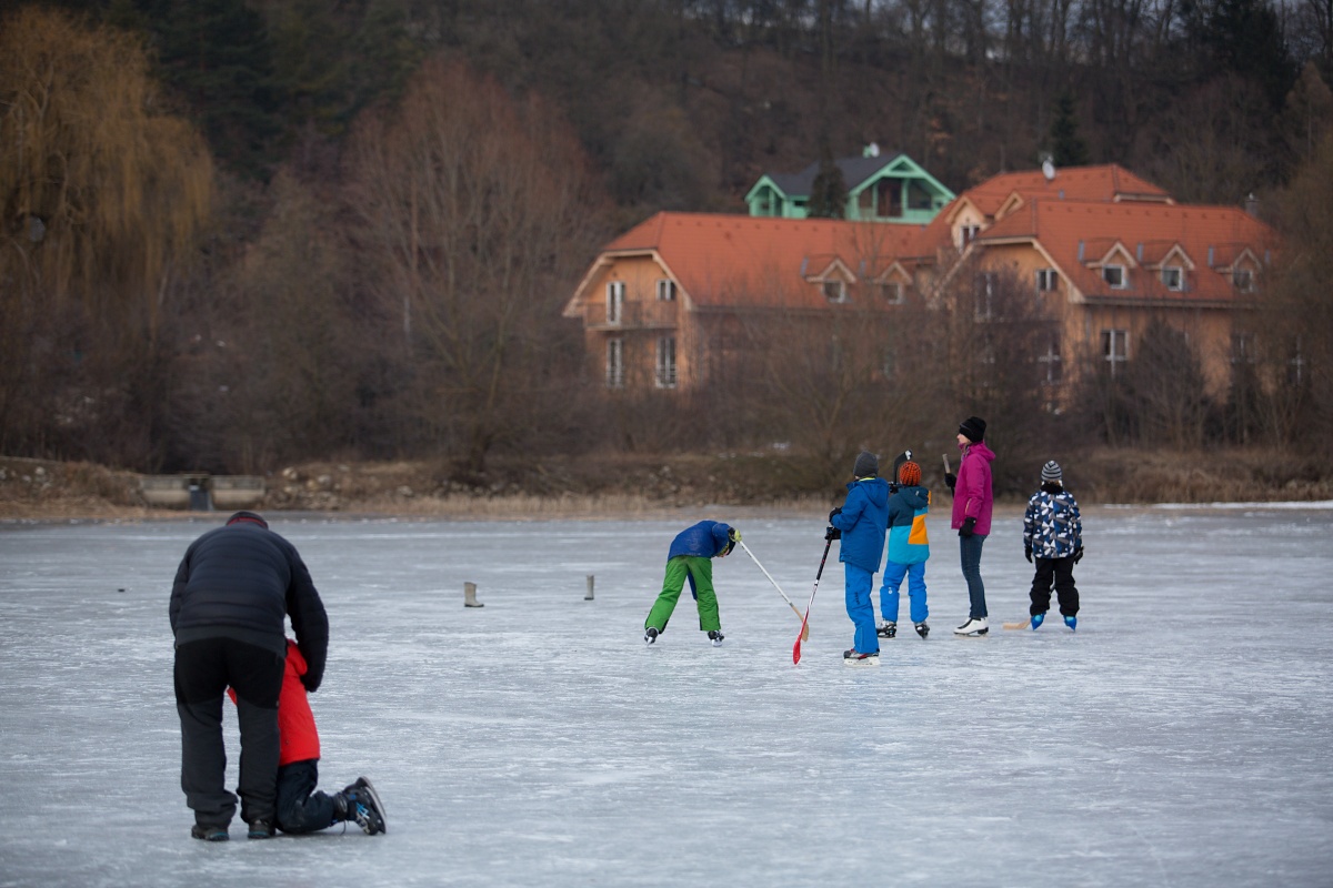 Arktická zima udrela naplno. Najvyššia denná teplota dnes dosahovala -4°C. Na vodnej nádrži Striebornica v Moravanoch nad Váhom sa vytvorila dostatočne hrubá vrstva ľadu, aby sa na nej dalo bezpečne korčuľovať. Využili to rodičia malých detí, ktoré prvý raz stáli na korčuliach a tiež hokejisti a psy. Nezabudnite však, že ľad môže byť zradný a na vodných plochách korčuľujete na vlastné riziko. Pozrite si fotoreportáž zo štvrtka 1. marca.