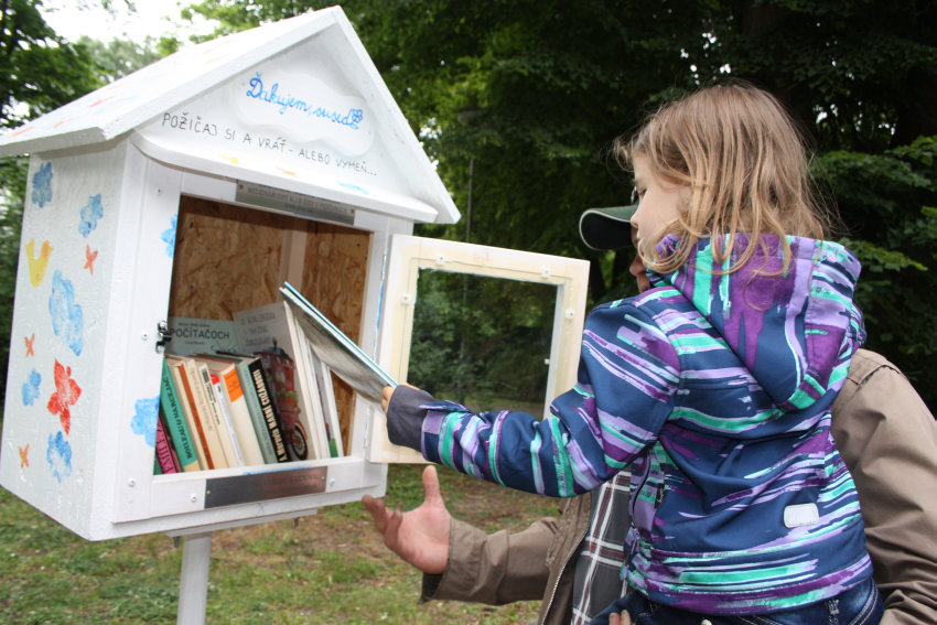 Prvú takúto búdku dali umiestniť členky na detskom ihrisku Fontána v mestskom parku koncom mája. Zaradili sa tým do celoslovenského projektu Ďakujem sused!, ktorý má jediné pravidlo: Požičaj, vráť alebo vymeň. Čitatelia si vyhliadnutú knižku môžu prečítať priamo na lavičke v parku alebo si publikáciu požičať domov.