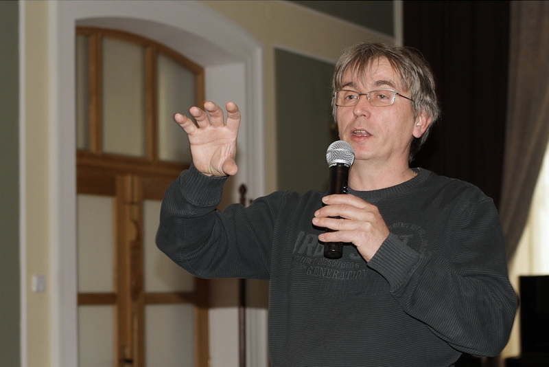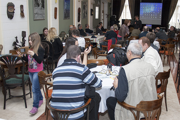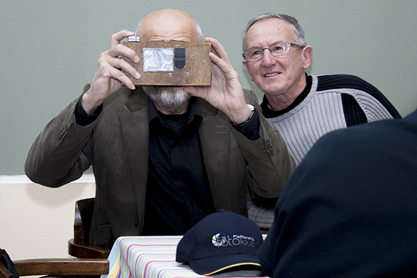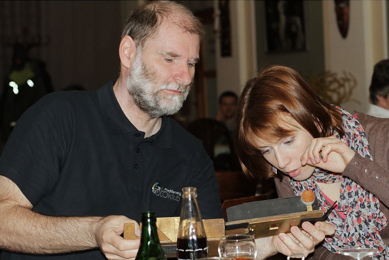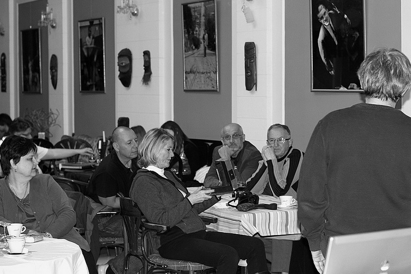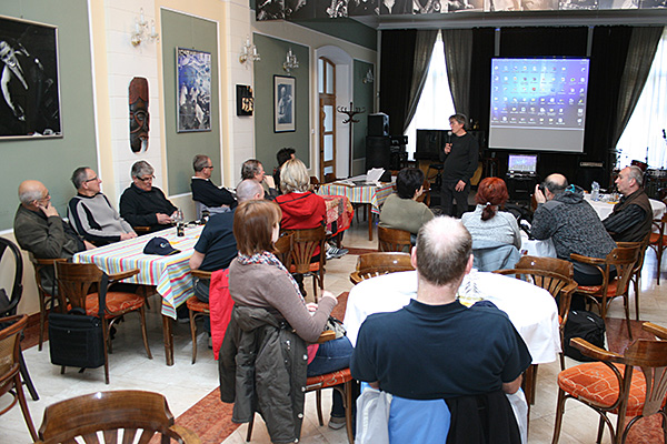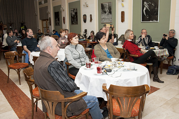 Prvou témou bola Camera obscura, o ktorej rozprával Ľuboš Vlček, člen trnavského fotoklubu IRIS. Práve fotografie zachytené touto technikou, tvoria podstatnú časť jeho autorskej tvorby. Prítomní sa dozvedeli, že princíp camery obscury objavil Aristoteles už v roku 350 pred n.l., ale až v 19. storočí sa zrodila myšlienka zachytiť obraz pomocou svetlotesnej komory na svetlocitlivý materiál. Priekopníkom tejto myšlienky bol Francúz Josef Nicéphore Niépce, ktorý v roku 1826 z okna svojho parížskeho bytu vytvoril legendárnu a zároveň pravdepodobne prvú zachovanú fotografiu v dejinách ľudstva a tým prispel k vzniku fotografie a fotoaparátov ako ich poznáme dnes. Ľuboš zaujal publikum nielen svojím zaujímavým rozprávaním, ale aj „skvostami“, v podobe dvoch vlastnoručne vyrobených fotoaparátov a veľkým počtom fotografií, ktoré touto technikou vytvoril. Ľuboš prezradil aj veľa vlastných skúseností, keď sa snažil vyrobiť ten najdokonalejší otvor do tenkého medeného plátu ako aj zážitkov, keď so svojimi výtvormi fotografoval.