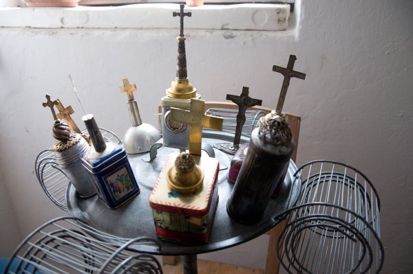 Podobne ako obrazy a objekty, ktoré v Dome umenia predstavila na jar, aj nová séria jej výtvorov vznikla z premetov, ktoré našla v pivnici. „Baví ma komponovať veci, ktoré poznám. Spomeniem si na každé hodiny, na každú dózu, na všetky veci, ktoré sú od mojej babičky, matky alebo tety. Mám k tým predmetom intímny vzťah,“ hovorí Naďa Mikolášiková-Ábelová.
