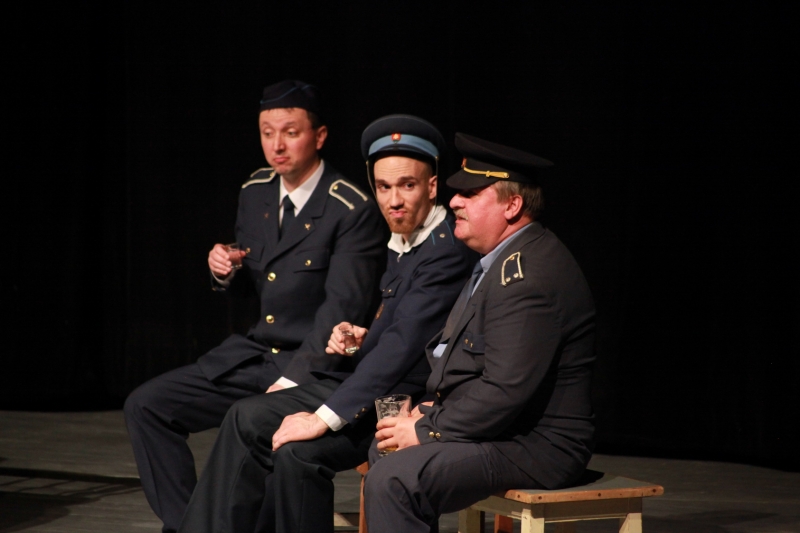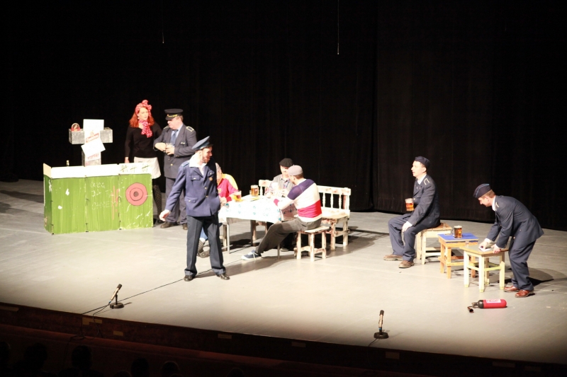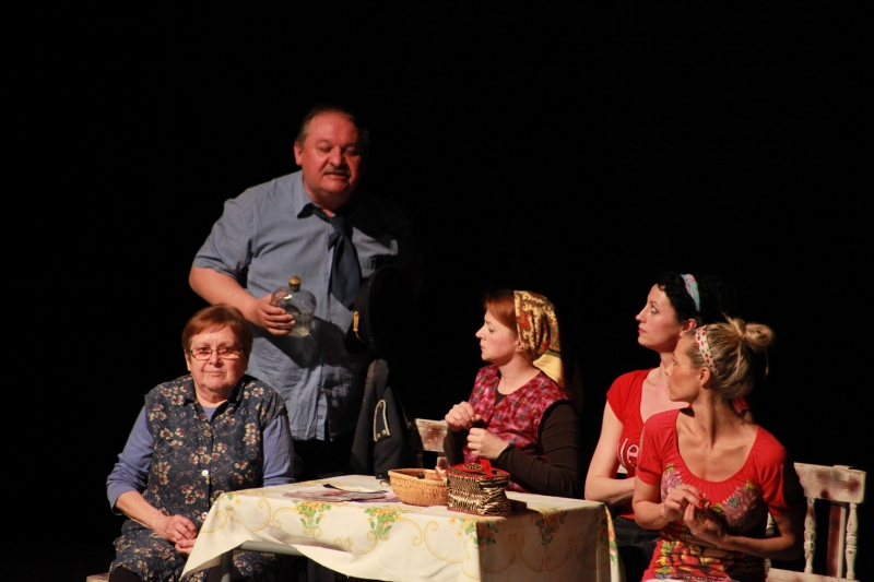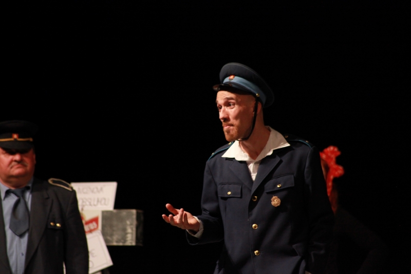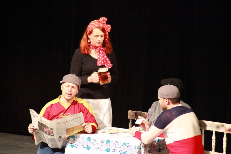 V hlavnej úlohe náčelníka Fera sa predstavil Michal Nikodem, jeho partnerku Betynu stvárnila Zuzana Slámová. Ďalšími hercami boli Jozef Kuzma, Pavol Ďuricha, Martin Škoda, Anežka Dominová, Radka Dengová, Dana Jurčová, Iveta Penthorová, Margita Huťková, Miroslav Kojda a Jozef Šiška. Celý súbor zožal na záver za svoj výkon obrovský potlesk a standing ovation. Pre veľký záujem je už známy aj termín reprízy, tá bude 16. mája o 19.00 h opäť na doskách Domu umenia.
