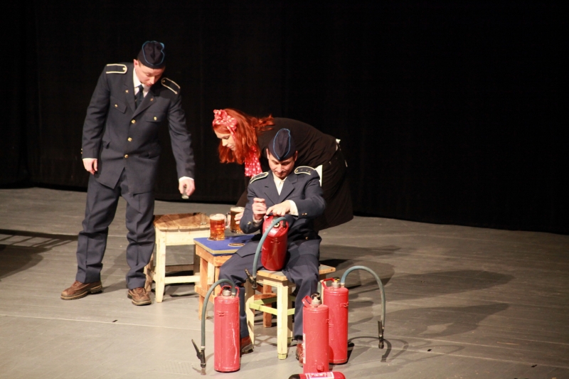 Piešťanský Dom umenia v sobotu 28. marca naplnili vďaka dedinskej groteske “Horí ohník, horí“ vlny smiechu. Obnovená premiéra predstavenia o skupine neschopných hasičov a ich nahnevaných žien malo spád, bolo plné slovného aj vizuálneho humoru a nechýbala ani posteľová scéna. Divadelníci zo súboru Dino z Hornej stredy ju však nepojali horizontálne, ale netradične – vertikálne. Diváci ale ocenili napríklad aj cyklistické výkony hasičských manželiek…