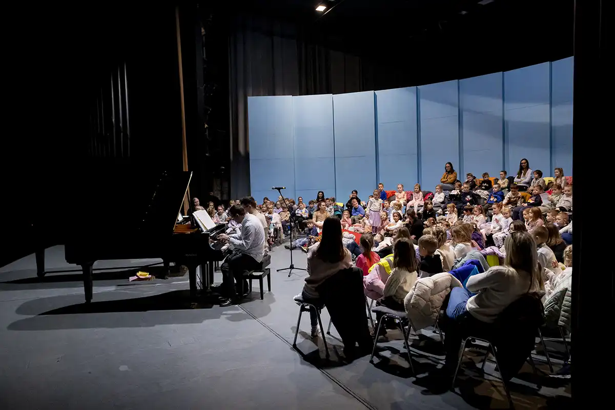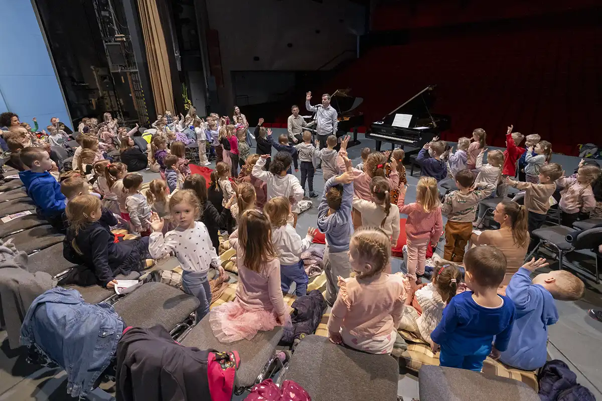 Veľká sála Domu umenia Slovenskej filharmónie v Piešťanoch bola rezervovaná 4. marca pre tých najmladších verných návštevníkov cyklu edukatívnych koncertov Filharmonickej škôlky. Deti materských škôl Piešťan a okolia hravou formou objavovali svet klavírnej tvorby, harmónie a hudobnej krásy v skvelej interpretácii klaviristu Ivana Šillera.