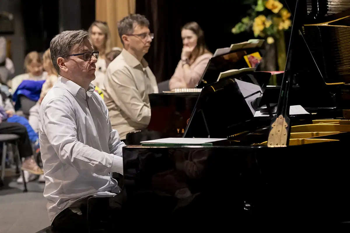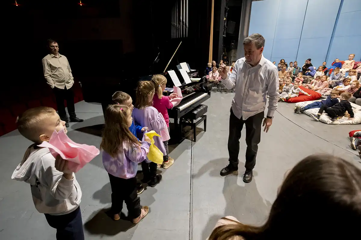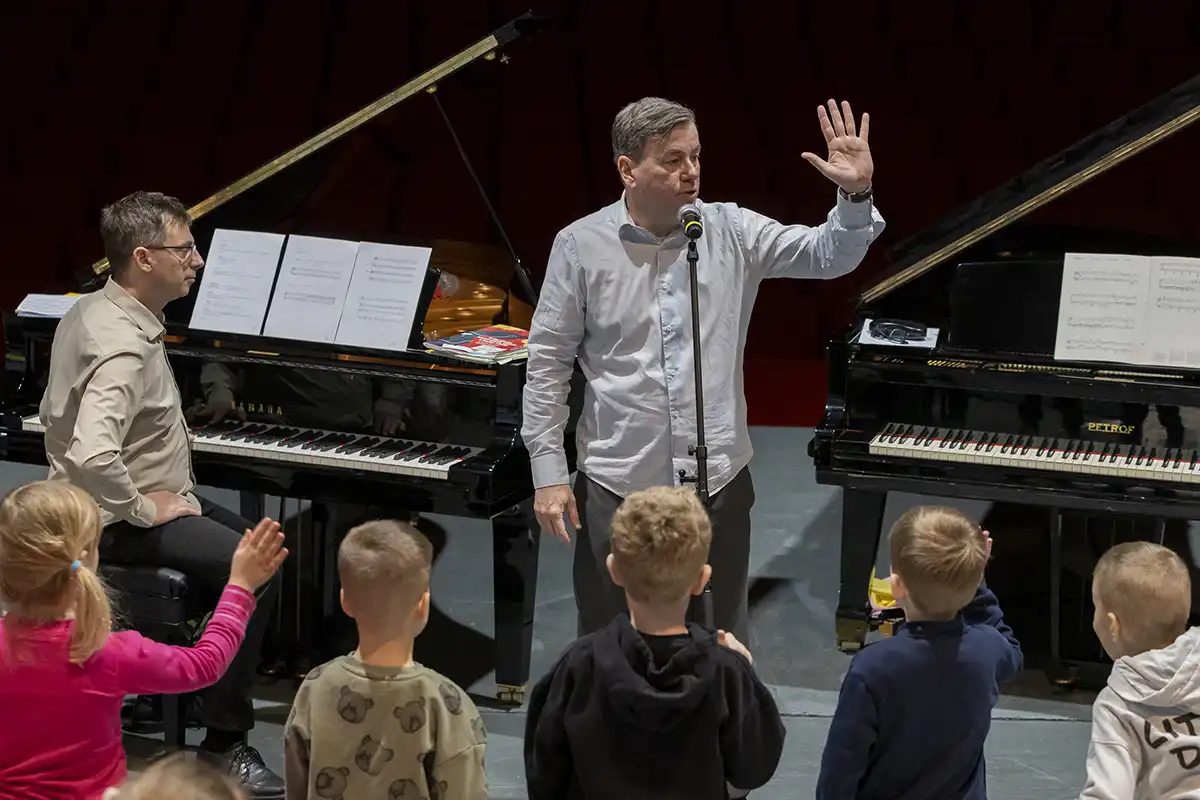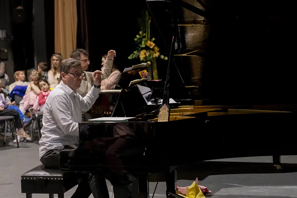 Klavírnym koncertom sprevádzal škôlkárov slovom i hrou na klavír skladateľ, moderátor, lektor a autor edukatívneho projektu Tomáš Boroš. Ten dramaturgii Domu umenia prezradil, že za čas uvádzania Filharmonickej škôlky v Piešťanoch vidí významný posun v rozvoji muzikality detí, reakciách na hudobné podnety a vo vzájomnej tvorivej spolupráci.