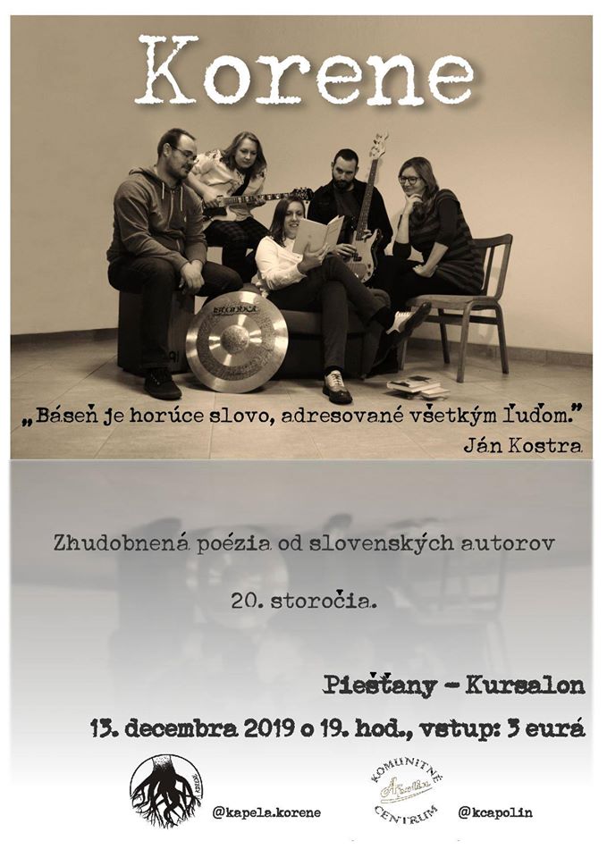 Kapela Korene natočila svoj prvý videoklip v Piešťanoch. Práve tu tiež zakončí svoju prvú koncertnú šnúru, ktorú absolvovala na trase Trakovice, Bučany, Pečeňady, Bratislava, Nitra. Koncert sa uskutoční 13. decembra o 19:00 h v KC Apolin v Kursalone.