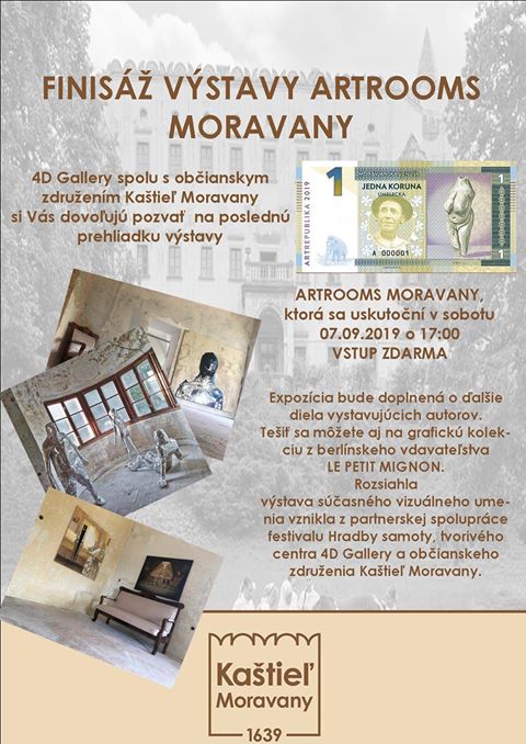 Posledná prehliadku výstavy ARTROOMS MORAVANY už túto sobotu 7. septembra. Bude špeciálna aj pre tých, ktorí výstavu už videli. Expozícia bude totiž doplnená o niektoré ďalšie diela vystavujúcich autorov a tešiť sa môžete aj na grafickú kolekciu z berlínskeho vydavateľstva LE PETIT MIGNON. Dvaja z autorov tohto grafického kolektívu, Ben Sanair (FR) a Tomas Perrodin (FR) touto výstavou uzatvárajú svoj rezidenčný pobyt v 4D Gallery. Vrátane tohto doplnenia je na výstave prezentovaných už viac ako 40 autorov.