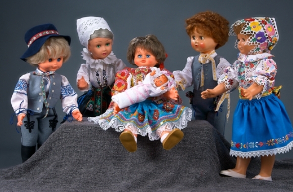 Drobné „modelky“ naše kroje predvádzajú naozaj verne a nechýbajú im ani spodné vrstvy odevu, mašle, čipky, korálky.