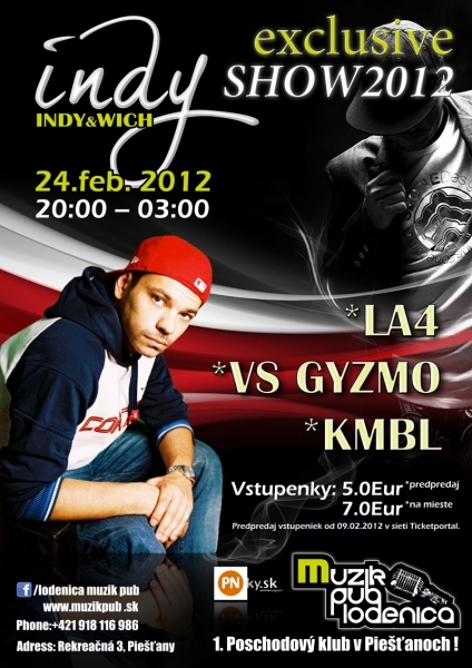 Do hudobného klubu Lodenica Muzik Pub prídu Indy a LA4 v piatok 24. februára o 20.00 h s exkluzívnou show, počas ktorej predstavia svoje sóla KMBL a GYZMO.