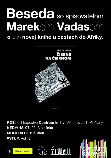Držiteľ literárnej ceny Anasoft litera spisovateľ Marek Vadas bude v kníhkupectve Centrum knihy rozprávať o svojej novinke Čierne na čiernom. Beseda s čitateľmi sa uskutoční 18. júla o 19.00 h.