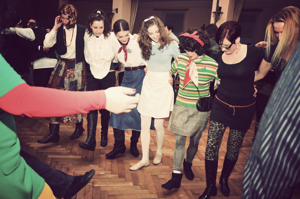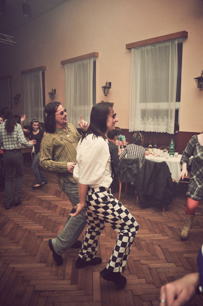 Na štvrtú retrodiskotéku v Krakovanoch naozaj dorazili aj dve pionierky s pionierskou šatkou uviazanou v tvare jednotky. Podujatie sa konala v piatok 17. februára 2012, pretože my „postarší“ pamätníci pionierov a SZM už prebdenú noc tak ľahko nedospíme.