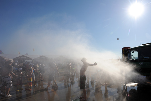 dňoch odnášajú. Slnečné počasie ľuďom spôsobovalo aj ťažkosti. Podľa zdravotníkov bol najčastejším problémom úpal. Hasiči si naopak slnko užívali. S nadšením hasili rozhorúčené davy a festival neustále zásobovali osviežujúcou náladou i pitnou vodou.