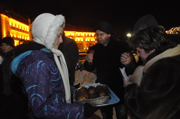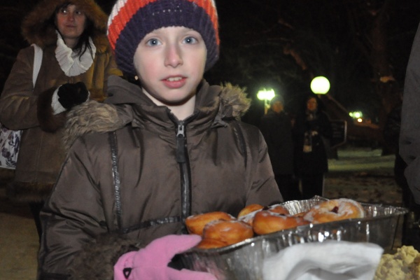 Znovuzasvätenie Jeruzalemského chrámu si 12. decembra pripomenuli na Kúpeľnom ostrove asi tri desiatky ľudí. Blízko vianočného stromčeka stála chanukija – osem ramenný svietnik, na ktorom sa neskôr rozhorelo päť svetiel, pretože 12. december bol piatym dňom Chanuky. Neodmysliteľnou súčasťou tohto sviatku je hudba, o ktorú sa postaralo Duo Anyalai. Prítomní si pochutnávali na tradičných židovských dobrotách – zemiakových plackách a šiškách s džemom.