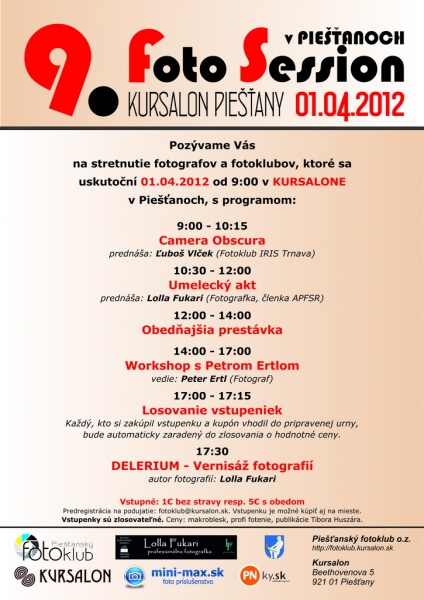 Kultúra Pozvánka na 9. fotosession a výstavu Lolly Fukari Published 14 rokov ago on 28. marca 2012 By PNky.sk Share Tweet Reklama Stretnutie fotografov a fotoklubov, na ktorom je vítaný každý, sa uskutoční 1. apríla 2012 o 9.00 h v Kursalone. Na programe sú prednášky, workshop aj súťaž o hodnotné ceny. Fotosession zakončí o 17.30 h vernisáž fotografií Lolly Fukari. Reklama -inf- Reklama Reklama Related Topics: Up Next Ďalší úspech Veroniky Obertovej: videoklip Jany Kirschner Don't Miss Pohoda Deň_FM: festival zverejní ďalšie mená PNky.sk Mohlo by vás zaujímať Reklama Najnovšie články Novinky2 hodiny ago Pamätáte si pesničku Vánočný kaper od Slniečka? Nechajte sa ňou naladiť pred tradičným Vianočným koncertom Kultúra6 hodín ago Slovenské operné hviezdy zavítajú do Veľkého Orvišťa Novinky23 hodín ago Magický koncert vianočných melódií a tradičných kolied už tento piatok Aktuality1 deň ago Piešťanské zastávky autobusov menia názvy Novinky3 dni ago Vianočný večierok vo Welialand-e mimo stereotypu REKLAMA