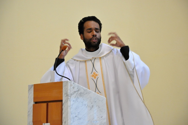 „Na túto príležitosť som sa tešil z dvoch dôvodov. Prvým z nich je fakt, že ešte pred niekoľkými týždňami bolo toto miesto mojím pôsobiskom. Druhý ma teší ešte viacej. Dostalo sa mi mimoriadnej cti prevziať od vás do hlohoveckého dekanátu relikviu sv. Cyrila,“ povedal na úvod Róber Vacula. Pokračoval zamyslením nad odkazom oboch solúnskych bratov. Dnešným ľuďom dal za príklad ich vytrvalosť a vieru vo víťazstvo Boha.