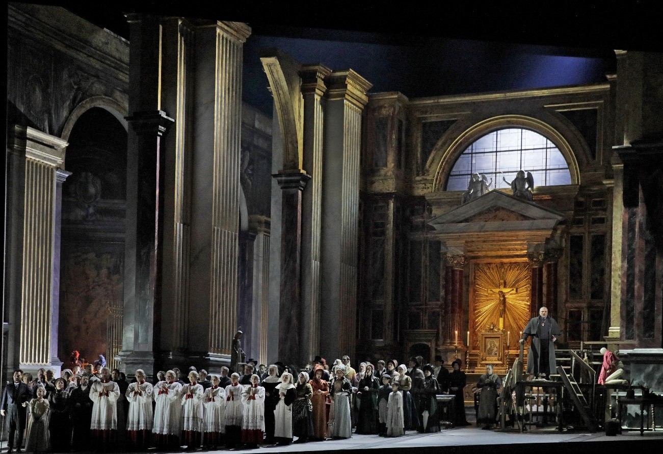 Génius talianskej opery Giacomo Puccini autenticky zobrazuje krutý svet násilia, nenávisti a sebeckých vášní. V Tosce k tomuto svetu stavia ako kontrapunkt svet hlbokej lásky a obetavosti. Pucciniho theatrum mundi nie je dianím veľkej politiky, ani romantických ideálov oslobodenia človeka, je to svet psychologickej drobnokresby, zložitý svet vzájomných vzťahov malých i veľkých ľudských príbehov. V postave Toscy sa spevácka hviezda Lisa Davidsen dostáva pre nepriaznivé okolnosti do rúk sadistického šéfa tajnej polície baróna Scarpiu. Ten za oslobodenie jej milého, maliara Maria Cavaradossiho, žiada maximálnu cenu – jej česť. Puccini tento vypätý dramatický konflikt zobrazuje strhujúcim hudobným jazykom, ktorý si svojou emocionalitou a melodickou krásou získava srdcia divákov na celom svete.