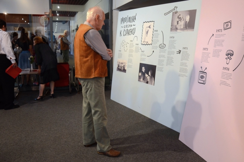 Výstava Cesta človečinou – 50 rokov obsahuje fotografie, obrazy, plagáty, koláže, ale i predmety, ktoré Radošinské naivné divadlo používalo pri svojich predstaveniach a môžete si ju pozrieť v Dome umenia do konca septembra. Atmosféru včerajšej vernisáže zasa nájdete na fotografiách nášho spolupracovníka Viktora Vrábla.