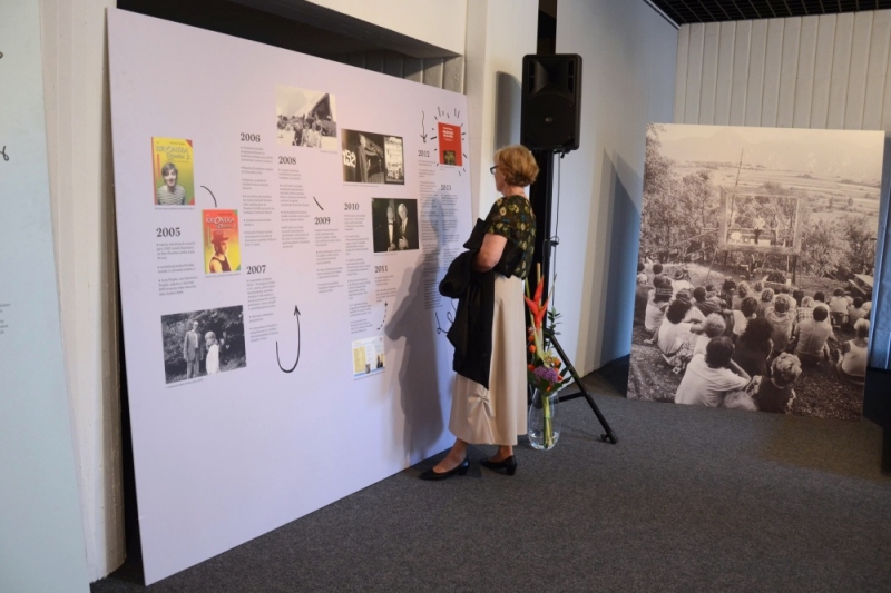 Výstavu, ktorá mapuje cestu radošinskej človečiny do sveta, otvorili organizátori Divadelný ústav Bratislava, Mesto Piešťany a Dom umenia Piešťany vo štvrtok 4. septembra o 17-tej vo výstavnej sále Domu umenia pri príležitosti životného jubilea Stanislava Štepku.