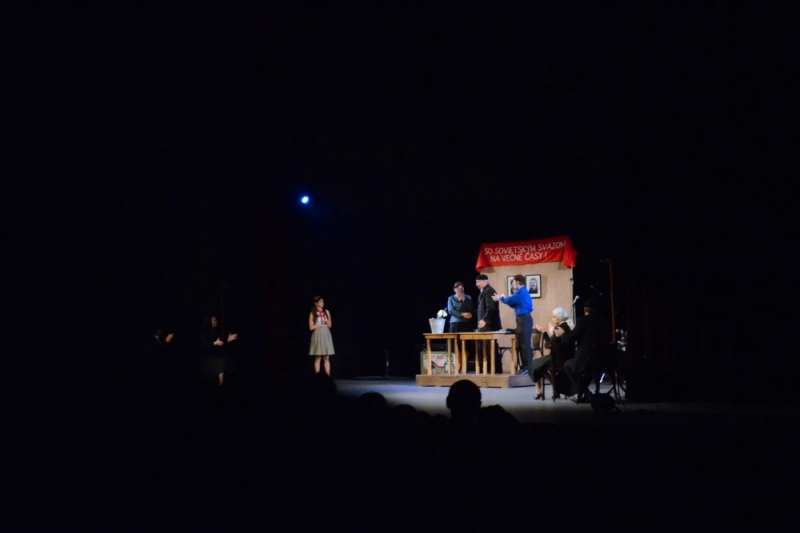 Slovo dostal okrem iných i sám jubilant, ktorý v júli oslávil sedemdesiatku. V príhovore si zaspomínal tiež na to, ako ich v kraji zakázali hrať (ukážka v krátkom videu). Členovia súboru Radošinského naivného divadla, ktorý už dávno netvoria iba dedinskí nadšenci, ale skvelí profesionálni herci, ho dopĺňali krátkymi scénkami a pesničkami .