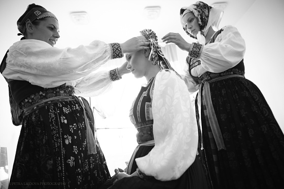 “Po svojich cestách v zahraničí som našla veľmi pozitívnu priam nadšenú odozvu. Rôznorodosť, tvar, prepojenosť s prírodou a dekoratívnosť svadobných párt a čepcov priam vyrazila dych. Veľa prepojení so svetom, či už vizuálnou metaforou tekovského čepca s egyptskou Nefertiti alebo tekovskou partou s thajskou alebo kambodžskou pokrývkou hlavy, prepojenie medzi partou z Torysiek zo Spiša s tribal pokrývkou v Keni alebo v Indii, to všetko som sa snažila vystihnúť na fotografiách s dávkou renesancie v tom pravom slova zmysle. Svadobná parta z Vajnor naopak vyrazila dych mnohým Slovákom, nechceli veriť, že je to práve slovenské. Svadobná parta z Veľkého Lomu sa už v regióne nedá nájsť, resp. mne sa to nepodarilo, je len v archíve krojárne alebo v múzeu, avšak, jej tvar mal ohlas v zahraničí ako niečo tribal nádherné a exotické,” spomína Petra Lajdová.