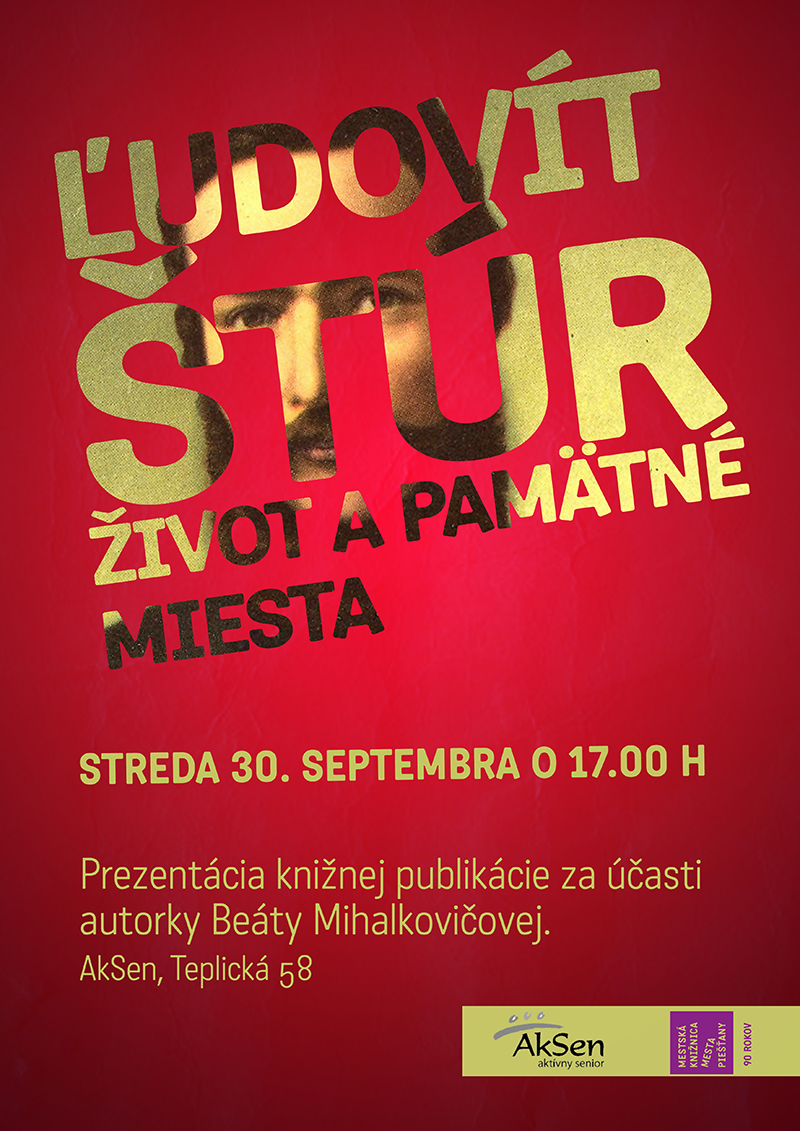 Ďalším podujatím z dielne piešťanskej knižnice je aj prezentácia knihy Ľudovít Štúr – život a pamätné miesta za účasti autorky Beaty Mihalkovičovej v priestoroch klubu AkSen na Teplickej ulici v stredu 30. septembra o 17,00 h.