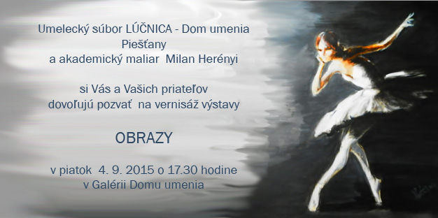 Už dnes – v piatok 4. septembra odhalí vo svojich Obrazoch akademický maliar Milan Herényi kus štylizovaného divadelného života, ale aj drsnej pravdy v jeho zákulisí…Vernisáž sa bude konať v Dome umenia o 17,30 h, kurátorsky podujatie zastrešila Lýdia Hrnčiarová. Po otvorení výstavy, ktorá potrvá do 27. septembra, pozýva Dom umenia o 19,00 h aj na záverečný koncert 16. ročníka Organových dní.