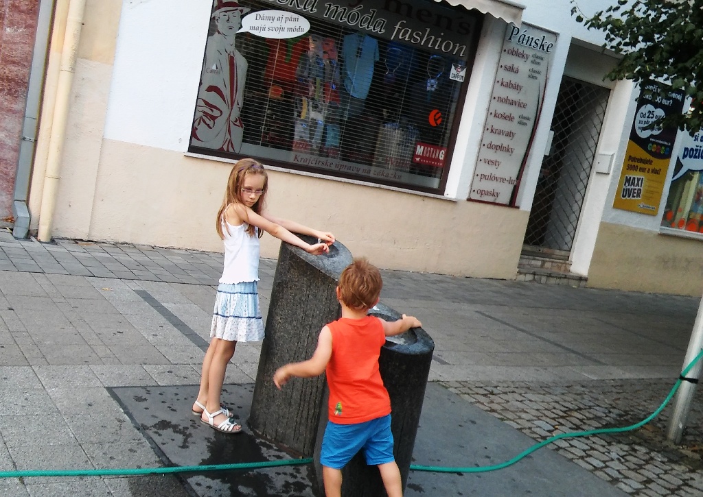 Osvieženie príde vhod, a tešia sa z neho najmä deti, jeho forma vedľa dizajnovej mramorovej pitnej fontánky však vyzerá tak trochu ako „päsť na oko“.