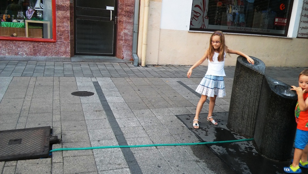 Na pešej zóne nová atrakcia – kropiaca hadica