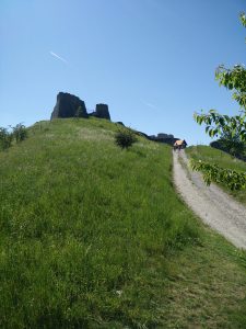 Prichádzame do obce Podbranč – Podhradie a zastavujeme v strede dediny na improvizovanom parkovisku, vedľa autobusovej zastávky s turistickým označníkom. Už po ceste je zrúcaninu krásne vidieť a nie je tomu inak ani na mieste parkovania . Hneď na začiatku máte na malom rázcestí možnosť výberu ako sa na hrad dostať, ale nemusíte byť v strese. Cesta na hrad je vlastne taký okruh, čiže môžete si vyskúšať obe cesty a vždy prídete k autu. My si cestu tam vyberáme po chodníku cez malý les pod hradom. Asi po 20-tich minútach sa dostávame na obrovskú lúku odkiaľ už vidno vstup na hrad, ale ešte nás čaká malé asi 10 minútové stúpanie. Celá cesta teda trvá cca 30 minút úplne nenáročnej chôdze, ktorú zvládnu aj malé deti.