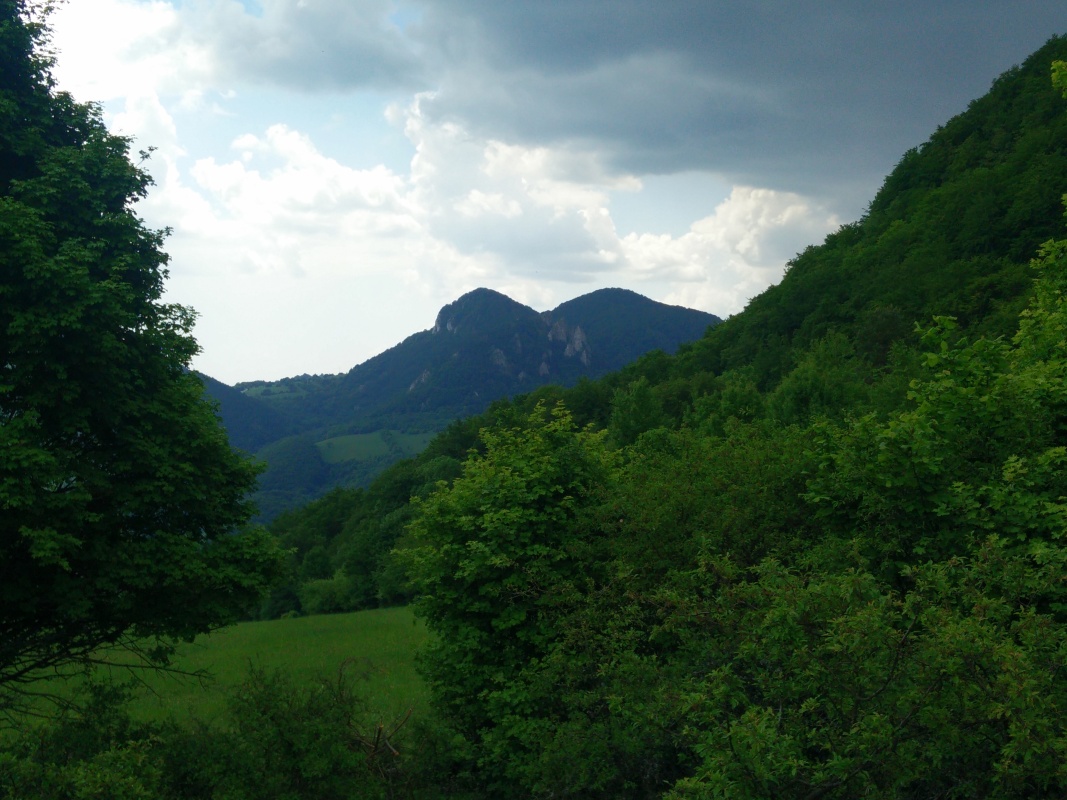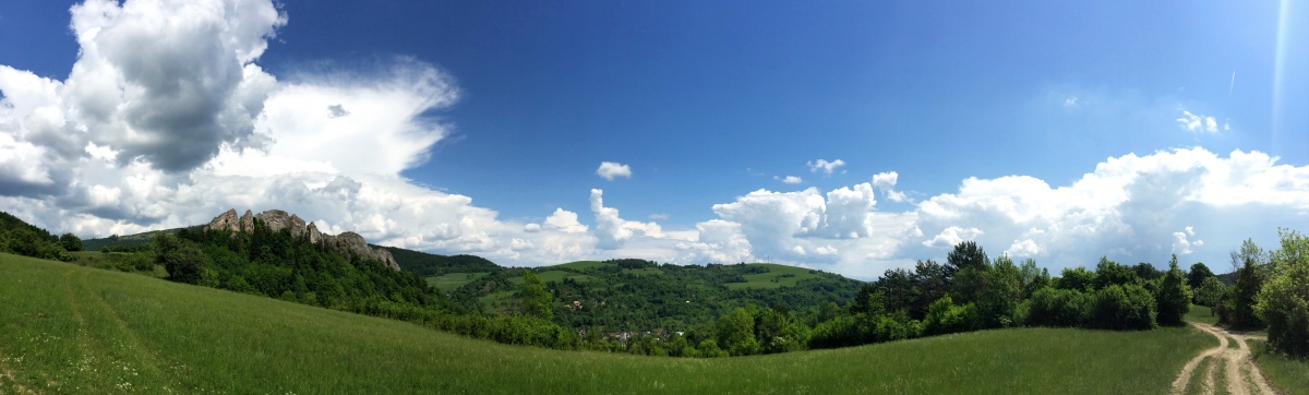 Po lese kráčame asi ďalších 20 minút. Ocitáme sa zas na lúke, prichádza posledných 15 minút šliapania do kopca. Prichádzame na vytúžené sedlo. Konštatujeme, že sa to oplatilo. Máme ozaj krásny výhľad na Vršatecké bradlá, o ktorých som už písal. Tu sa ich dá vidieť z úplne inej perspektívy. Chvíľku zostávame a vychutnávame si pohľad na prírodu, samozrejme, nezabúdame urobíme pár fotiek. Nanešťastie, blíži sa búrka, a tak sa radšej poberáme naspäť. Počasie nám teda nakoniec neprialo a búrka nás dostihla, no až v dedine, takže sme nezmokli. Spokojní ideme domov.