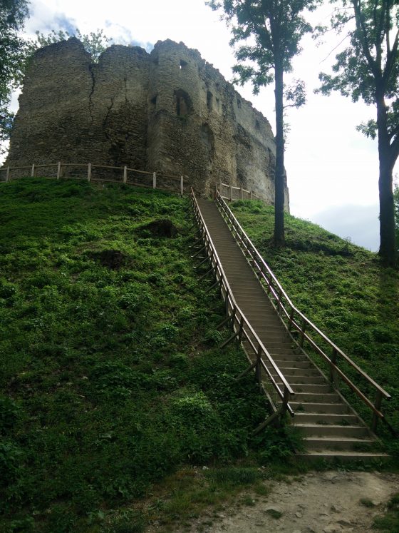 Tesne pod hradom vidíme pri múre lešenie a tak je nám hneď jasné, že aj tento hrad je v rekonštrukcii, resp. obnove, čo ma až hreje pri srdci. To, že to tu ide správnym smerom badáme hneď pod hradnými múrmi, keďže do hradu sa dá dostať už po drevených schodoch so zábradlím.