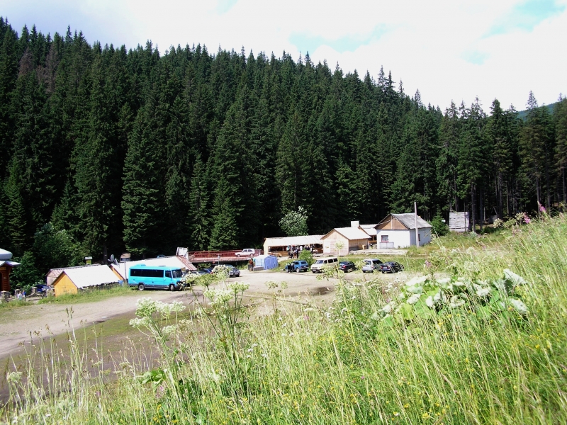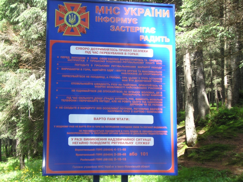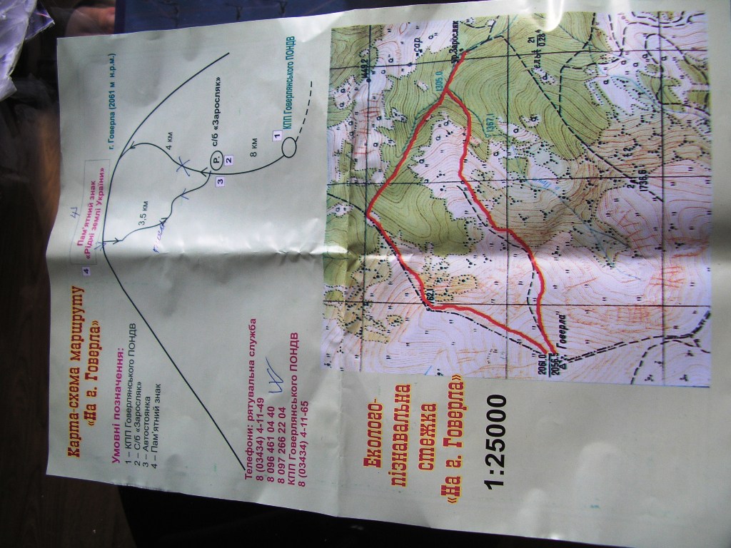 Do Národného parku sme dorazili po pomerne dlhej ceste autom. Pri prechode z jednej oblasti do druhej sme sa podrobili policajnej kontrole. Pri príchode do strediska pod Hoverlou sme sa museli zapísať, zaplatiť jasnačka a dostali sme mapku takej kvality ako je na fotke. Potom sme mohli vyraziť hore.